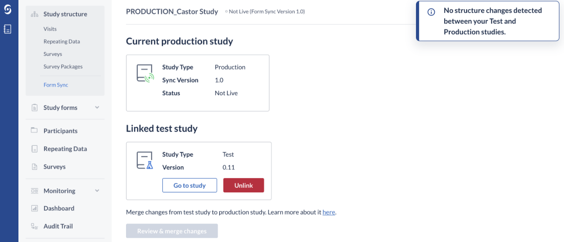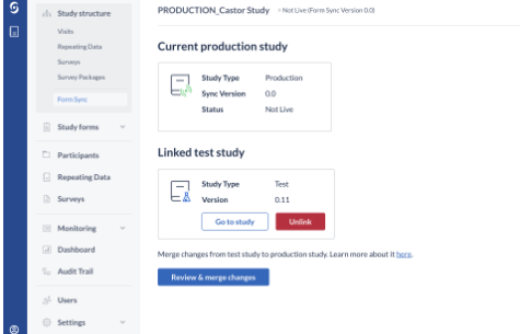 - Only changes made to the test study structure will be applied to your production study.