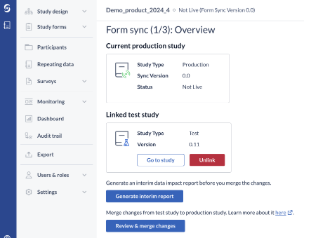 Users can now generate an interim data impact report during the Form Sync process, providing detailed insights into structural changes, data loss, and SDV (source data verification) impacts. Additional enhancements have been made to the ‘Data Impact’ page to improve visibility into cumulative data loss across all study instances.