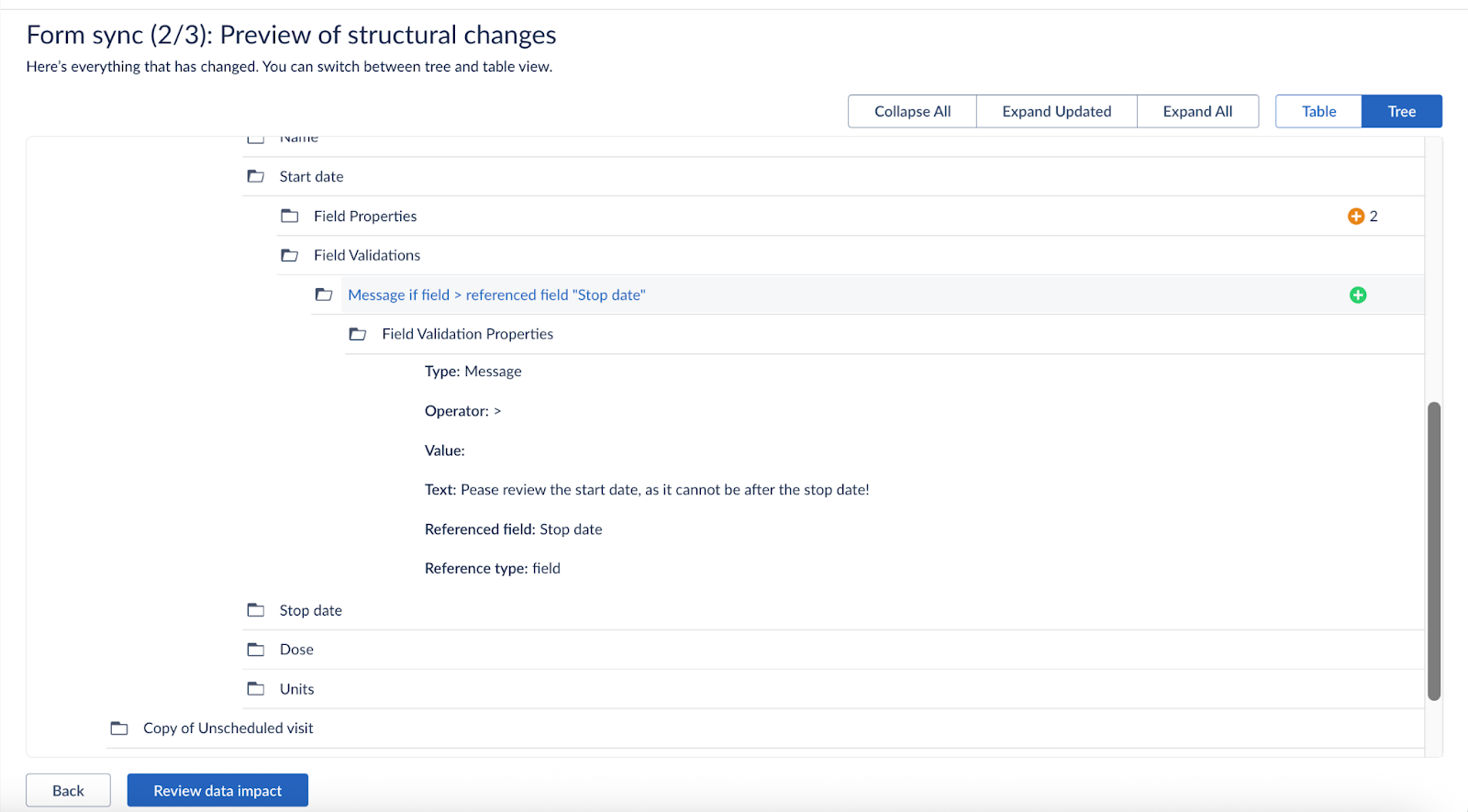 As part of the changes, we have extended Form Sync to fully support field validations that compare two date fields. When cloning or syncing studies, date-to-date validation rules are now copied, previewed, and merged with complete accuracy.