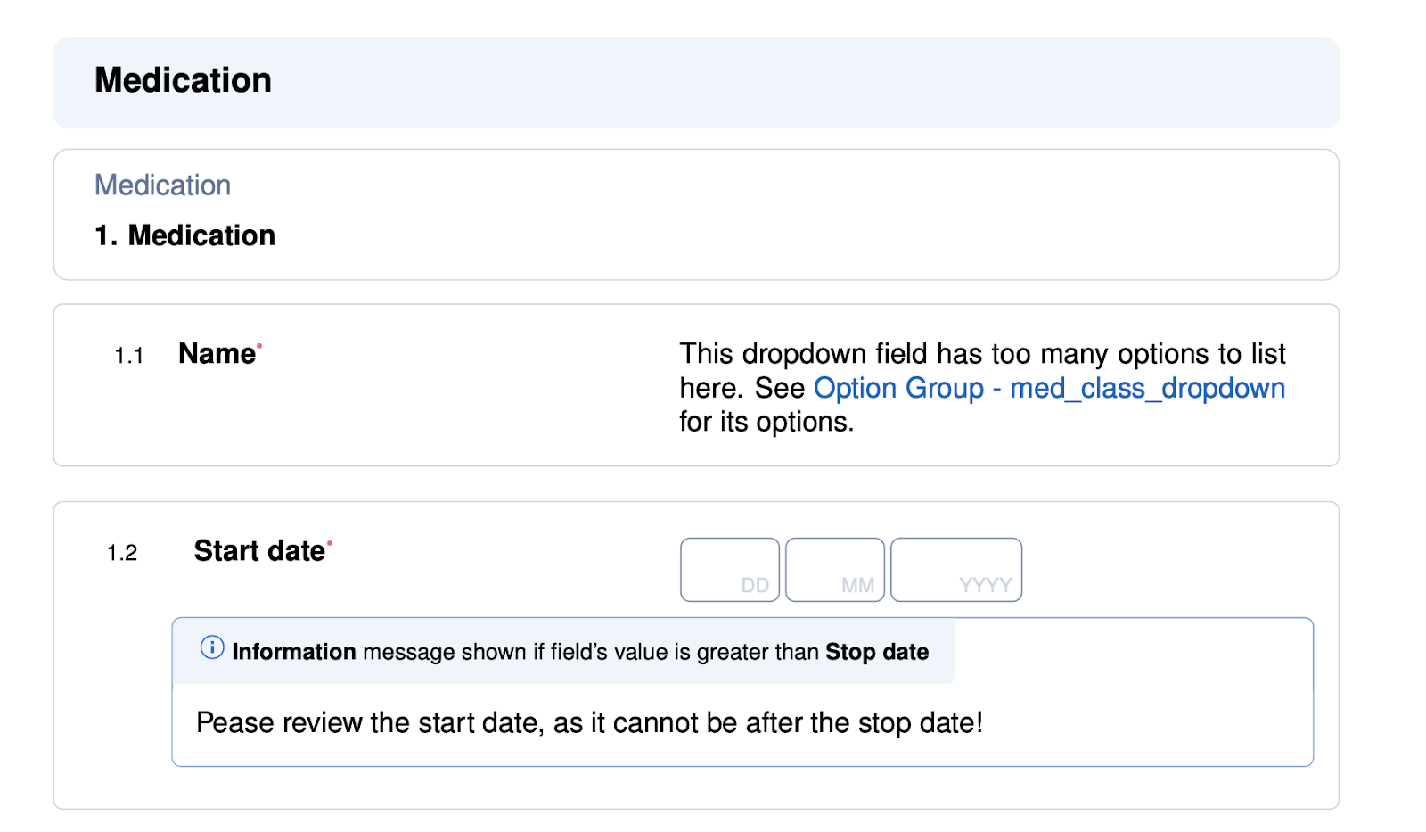 CDMS v2025.3.30 will also support field validations that work with partial dates, allowing study designers and data managers to catch logical date errors even when full dates are not collected (i.e you can configure a validation so that an year-only date is still checked against a full date field).